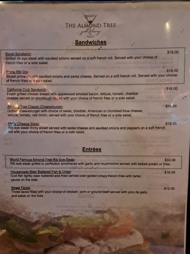 Almond Tree Lounge Menu